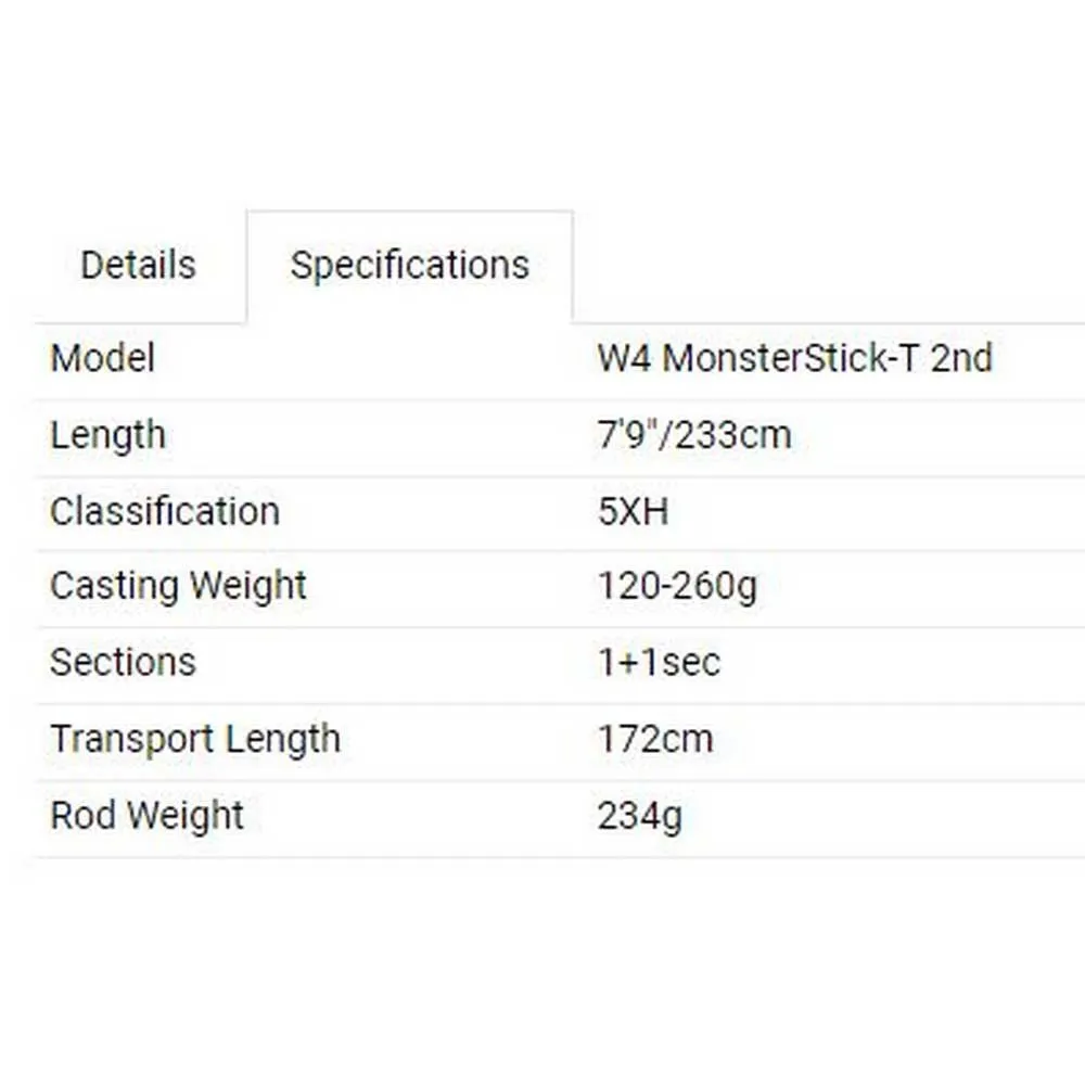 The W4 Monsterstick 2nd Generation rods feel as light as an angel when you pick them up, but give it the slightest hint of a fish and it turns into a demon. Lightweight enough to fish with for days on end, you will definitely want this heavy-duty brawler in your corner when you go pike and muskie fishing. When you want to cast heavy lures for record fish you need to bring out the big guns – W4 Monsterstick 2nd Generation is ‘the one’.